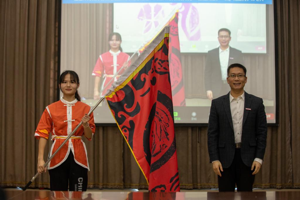 (陈志勇副校长向鼓队授旗)