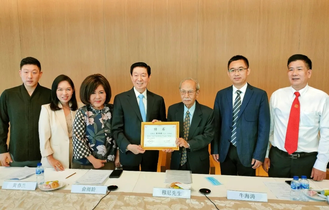 穆尼教授在雅加达会场代表学校向俞雨龄总主席颁发了总顾问聘书。