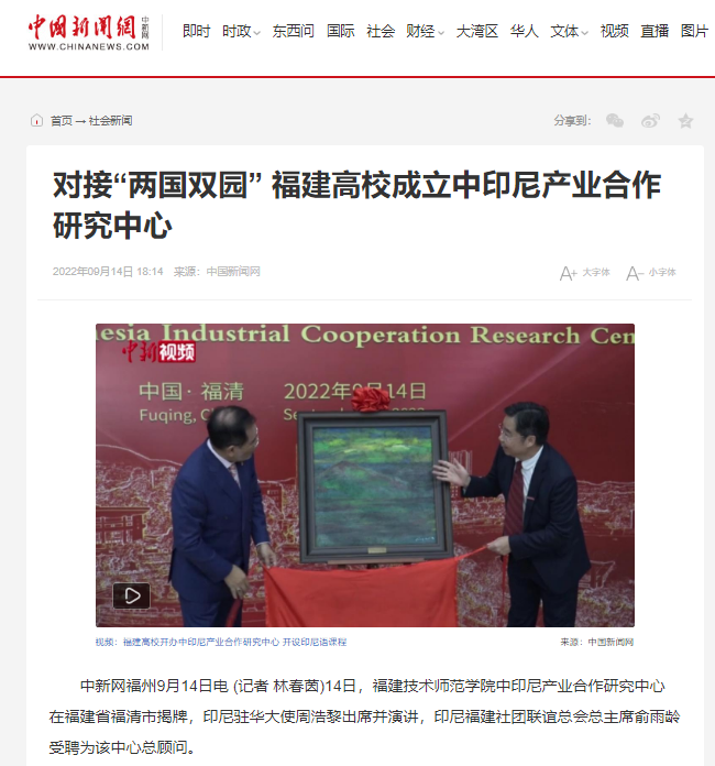2.对接“两国双园” 福建高校成立中印尼产业合作研究中心,中国新闻网