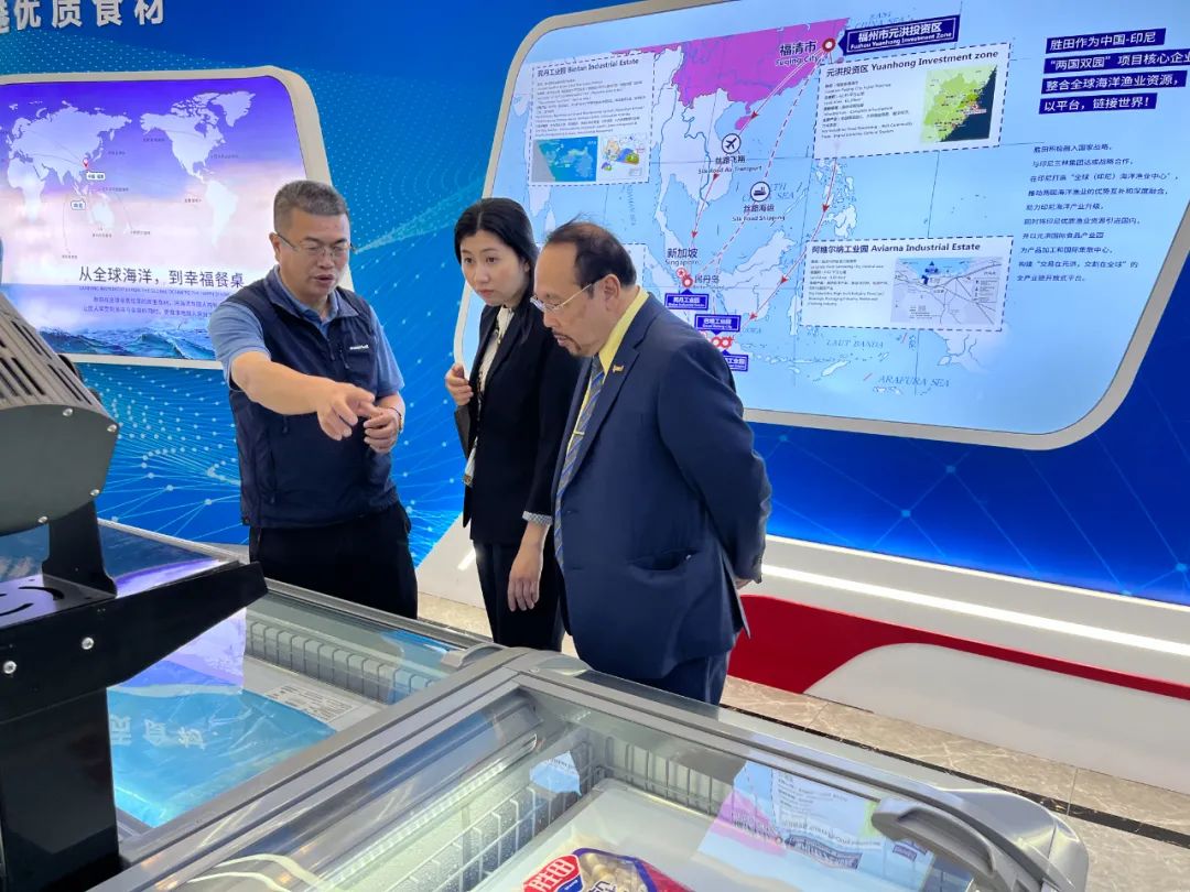 4月23日下午,阿曼教授在学校相关负责人陪同下参观了福清侨乡博物馆林绍良陈列馆、中印尼“两国双园”中方园区胜田食品和京东等企业。