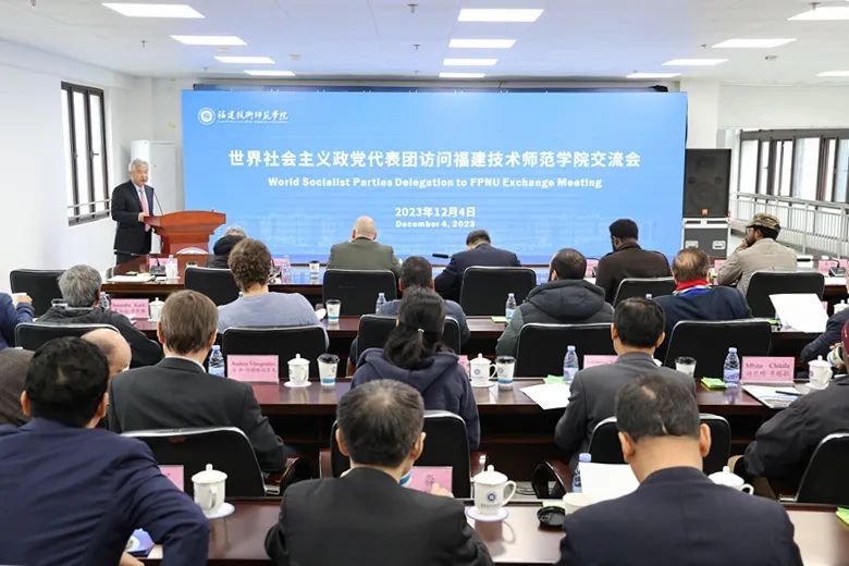 在交流会上,赖海榕书记代表学校对辛向阳书记及访问团来访表示热烈欢迎。他介绍了学校所在区位、发展定位、办学规模、生源分布、国际交流与合作及马克思主义学院建设等有关情况,特别是对学校立足地方、打造特色优势、致力成为“职业教育之师、应用技术之范”的高水平技术师范院校等进行了说明。他说,福建省是中国改革开放的前沿阵地,具有位于“一带一路”重要节点、面向台海、侨务资源丰富等众多区位和资源优势,一直走在全国发展的前列。当前,福建正奋力谱写新福建现代化建设新篇章。福清是福建制造业的排头兵,是福建改革开放的前沿阵地和重要窗口。位于福清的福建技术师范学院的设立和发展正是基于中国高等教育深化改革和分类发展、福建高等教育结构优化,特别是服务区域经济社会发展的现实需要。学校扎根福清,立足福建,辐射全国,面向世界,致力于培养高素质技术技能型专门人才和职业教育师资,以满足中国式现代化对人才、科技和教育等的新需求。他表示,愿与各国朋友一道,在社会主义政党发展、高素质应用型人才培养和职业教育合作等领域开展广泛交往,切实加强沟通联系,共同谱写合作共赢新篇章。