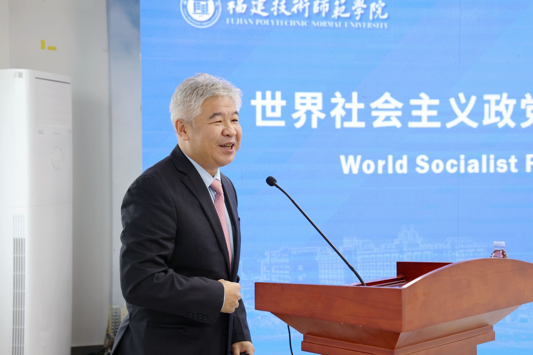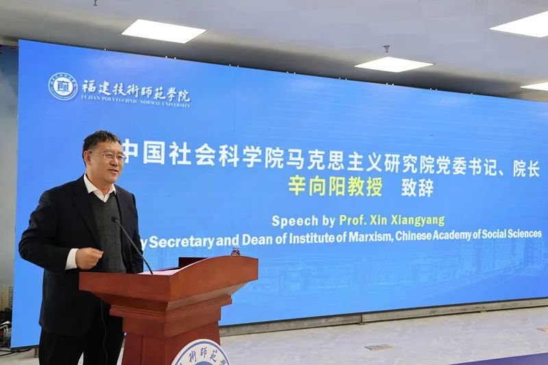 中国社会科学院马克思主义研究院党委书记、院长辛向阳作了致辞。他表示,福建技术师范学院是一个很独特的高校,此次到校访问提供了一个更好了解中国应用型人才培养情况的机会,也能够帮助访问团成员更好地了解中国式现代化的福建新实践。他表示将积极发挥桥梁纽带作用,在学校与代表团增进双方了解、加深友谊等方面给予支持,共同为各领域交流合作增添新的动力和活力。