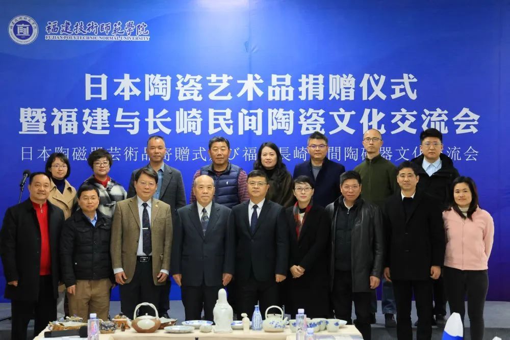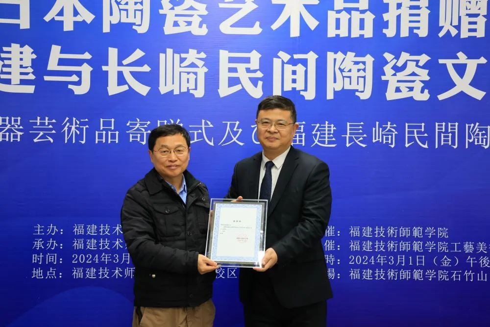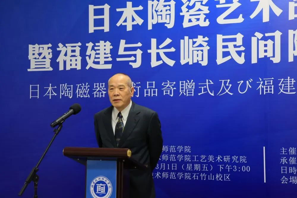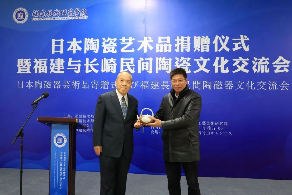 3月1日下午,日本陶瓷艺术品捐赠仪式暨福建与长崎民间陶瓷文化交流会在我校石竹山校区工艺美术研究院举行。日本株式会社田中油压董事长、民间收藏家田中满雄向学校捐赠一批日本长崎陶瓷艺术品——三川内烧陶瓷(平户烧)。日本株式会社福友董事长、我校客座教授陈健,广东收藏鉴赏家、殷实堂创办人殷富华陪同访问。福建省人民政府外事办公室翻译室副主任邱筱燕,国务院津贴专家、厦门金砖会晤国礼设计突出贡献奖获得者、中国白文化研究院院长陈仁海,中国收藏家理事、福建省收藏家瓷器委员会秘书长、福清市宋代东张窑黑釉盏非物质文化遗产传承人林秀光,福建师范大学原海外教育学院院长沙平等受邀出席活动。副校长姜兴山代表学校致辞。