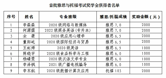 姜兴山副校长为学生代表颁发奖助金,以奖励同学们在雅思与托福考试中取得佳绩。 2023年,学校出台了《福建技术师范学院学生国(境)外交流奖助金管理办法(暂行)》,用于资助我校全日制在籍在校学生赴国(境)外交流及奖励在雅思与托福考试中取得佳绩的学生。首批共有9名学生获得雅思与托福考试奖助金(名单附后)。2024届毕业生中,共有19位同学即将前往英国、爱尔兰、澳大利亚、韩国以及中国香港、澳门升学深造。