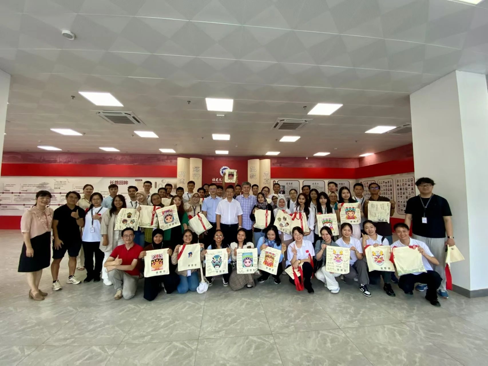 访校期间,交流团一行参观了学校校史馆,并在林联兴科技楼集贤厅参加了文化和专业体验活动。中华传统文化DIY手提袋、3D打印文创作品、创意水果拼盘……交流团青年学生与我校师生共同体验中华传统文化和福师院特色专业文化,深入开展交流对话。现场氛围轻松愉快,为本次互访游学活动划上圆满句号。