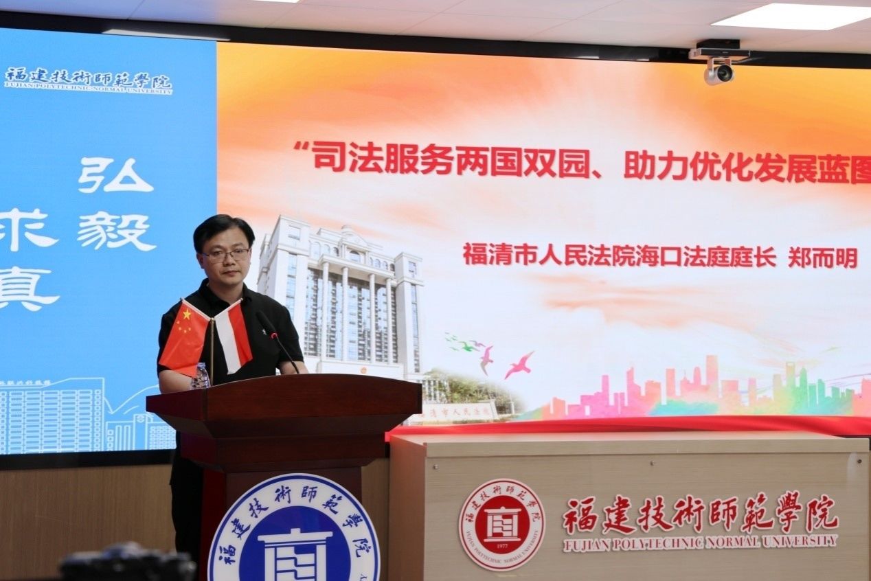 福清市人民检察院第三检察部副主任陈琳、福清市人民法院海口法庭庭长郑而明及我校中印尼经贸法律研究中心执行主任江悦庭博士分别作了报告。